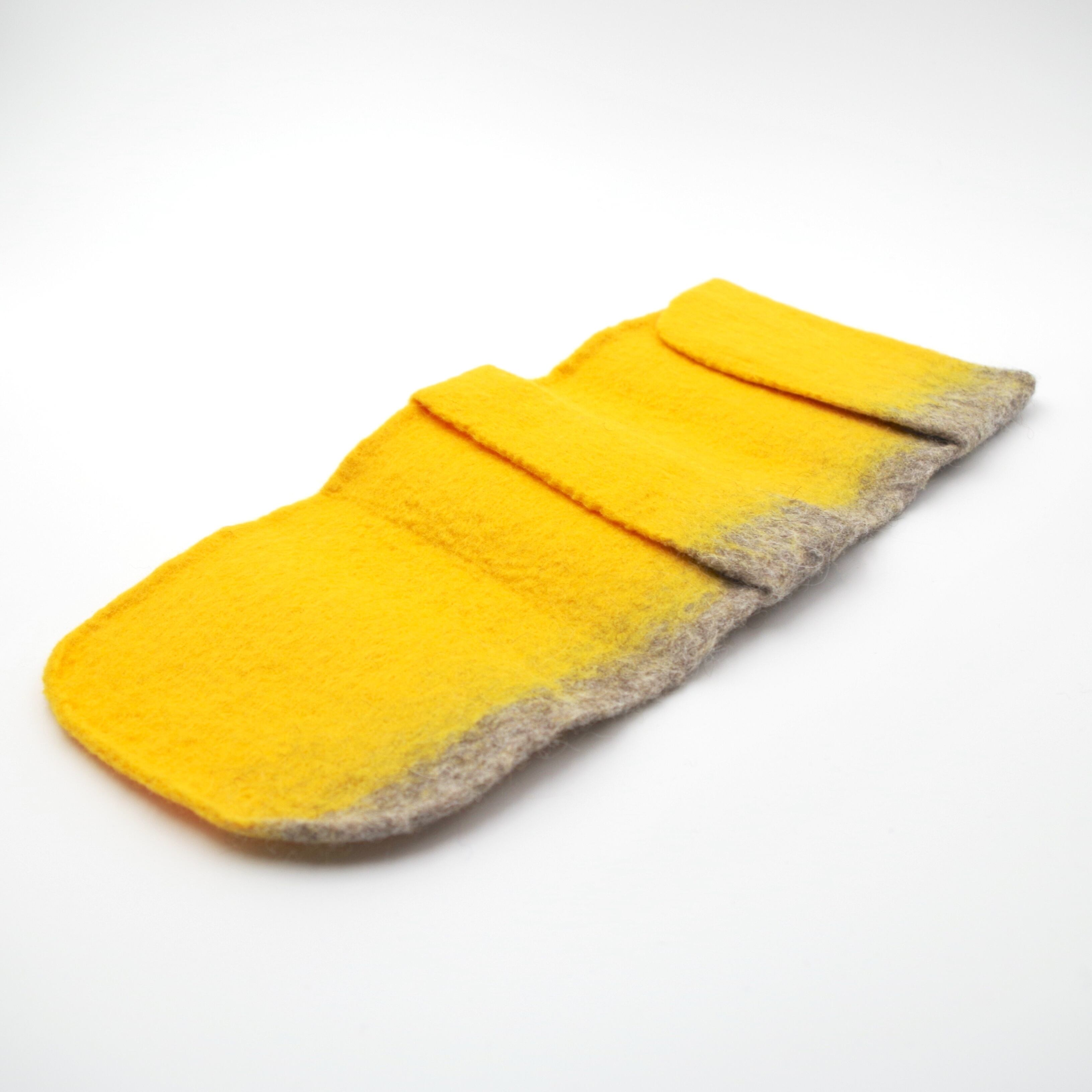 ミモザのような黄色をベースに、下部にナチュラルウールのグラデーションを配しています。