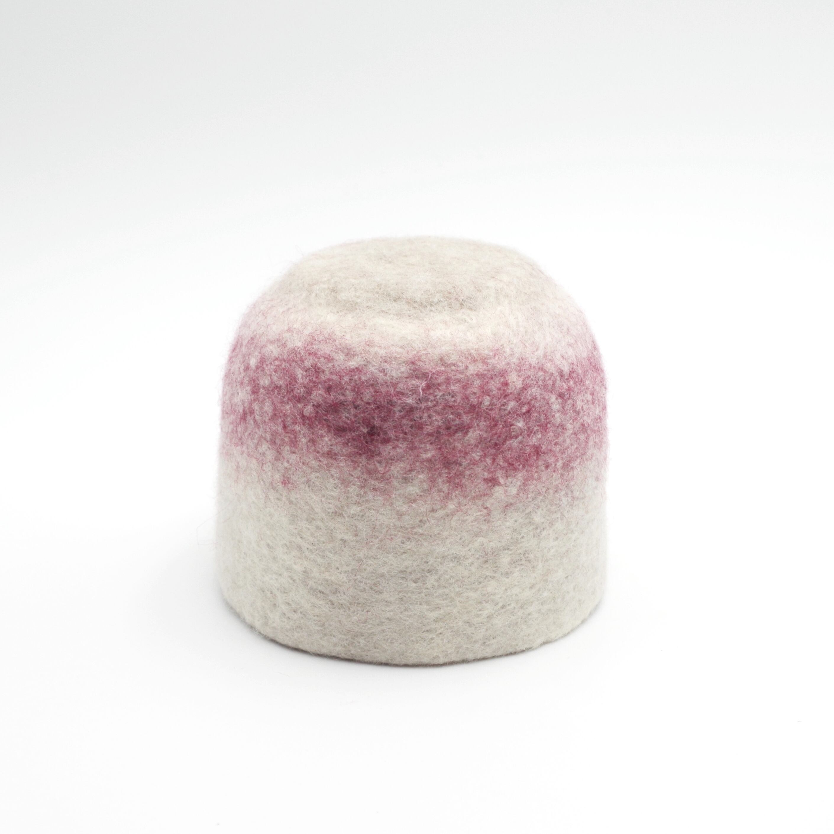グラデーションの5色の羊毛が混ざり合う(縮絨する)ことで生まれる風合いなどはすべて異なりますので、ハンドクラフトならではのそれぞれの個性の違いをお楽しみください。