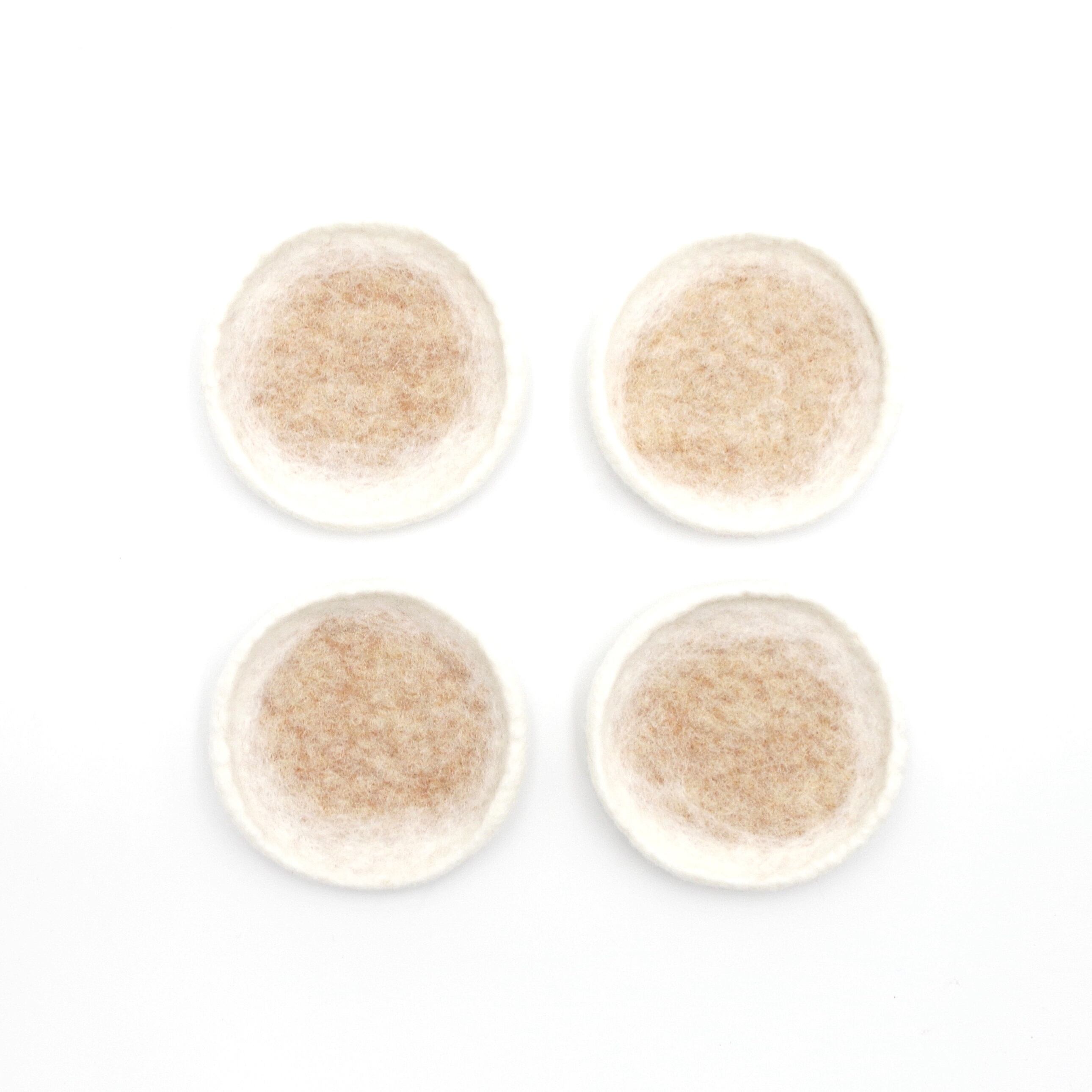 2色の羊毛が混ざり合う(縮絨する)ことで生まれる風合いなどはすべて異なりますので、ハンドクラフトならではのそれぞれの個性の違いをお楽しみください。