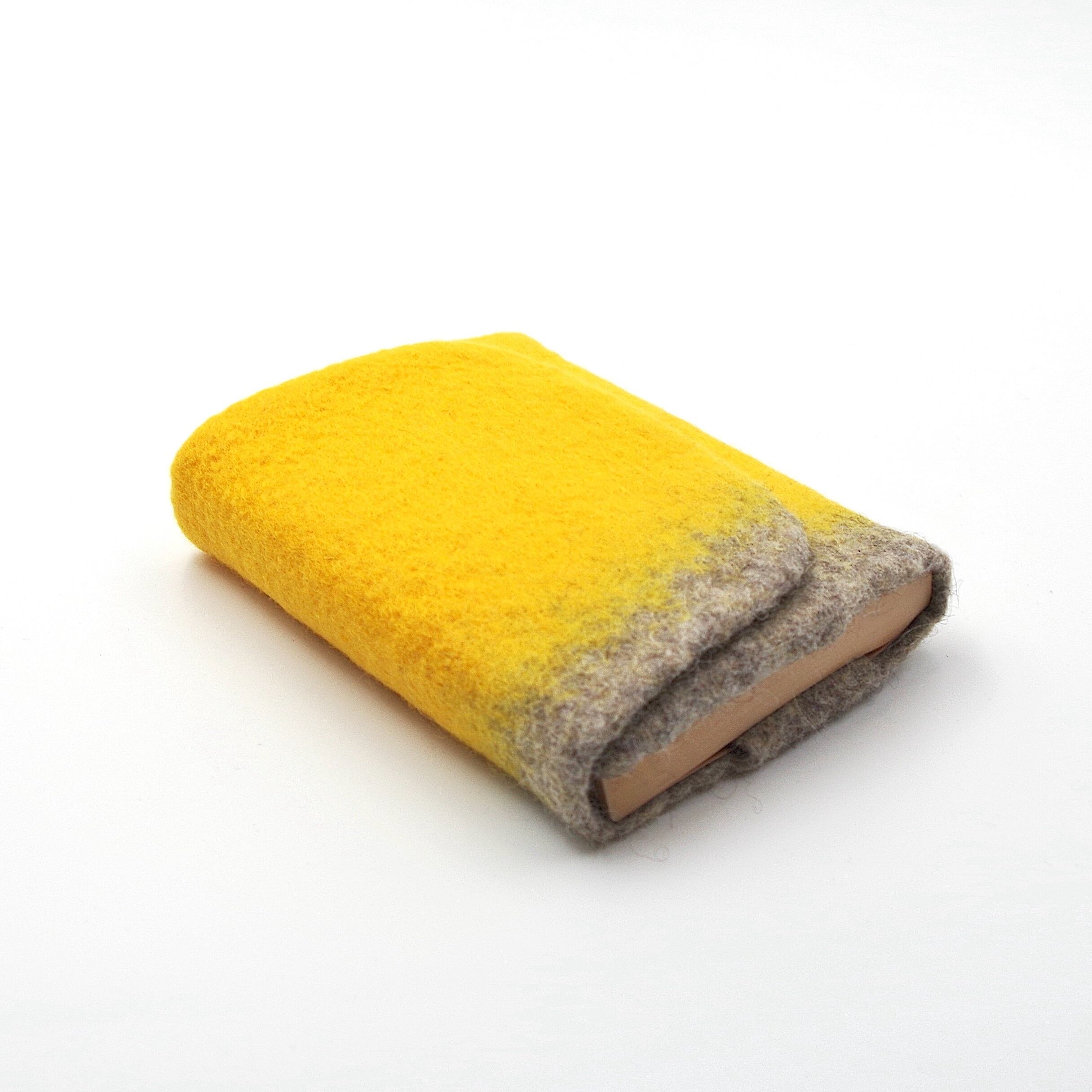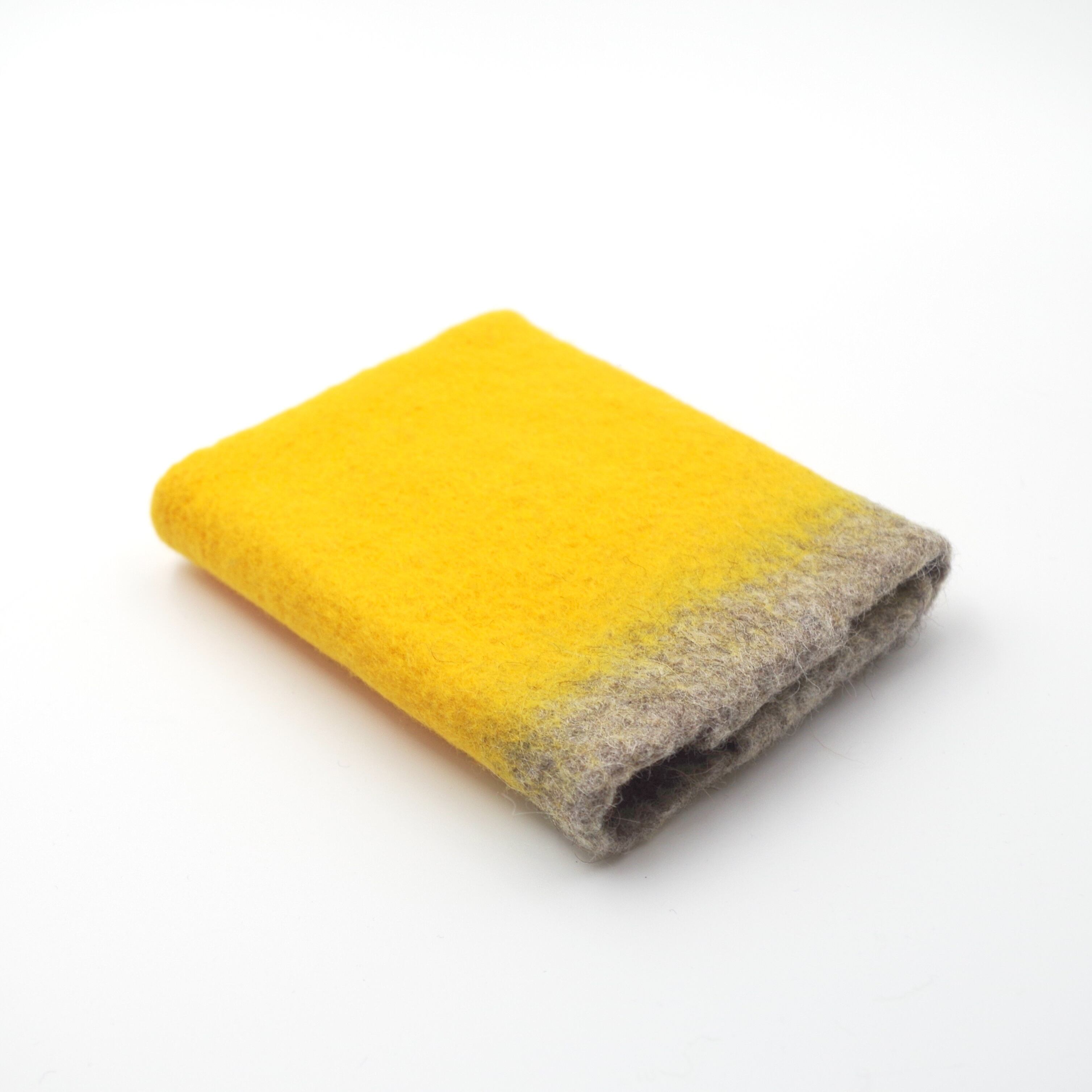 ミモザのような黄色をベースに、下部にナチュラルウールのグラデーションを配しています。