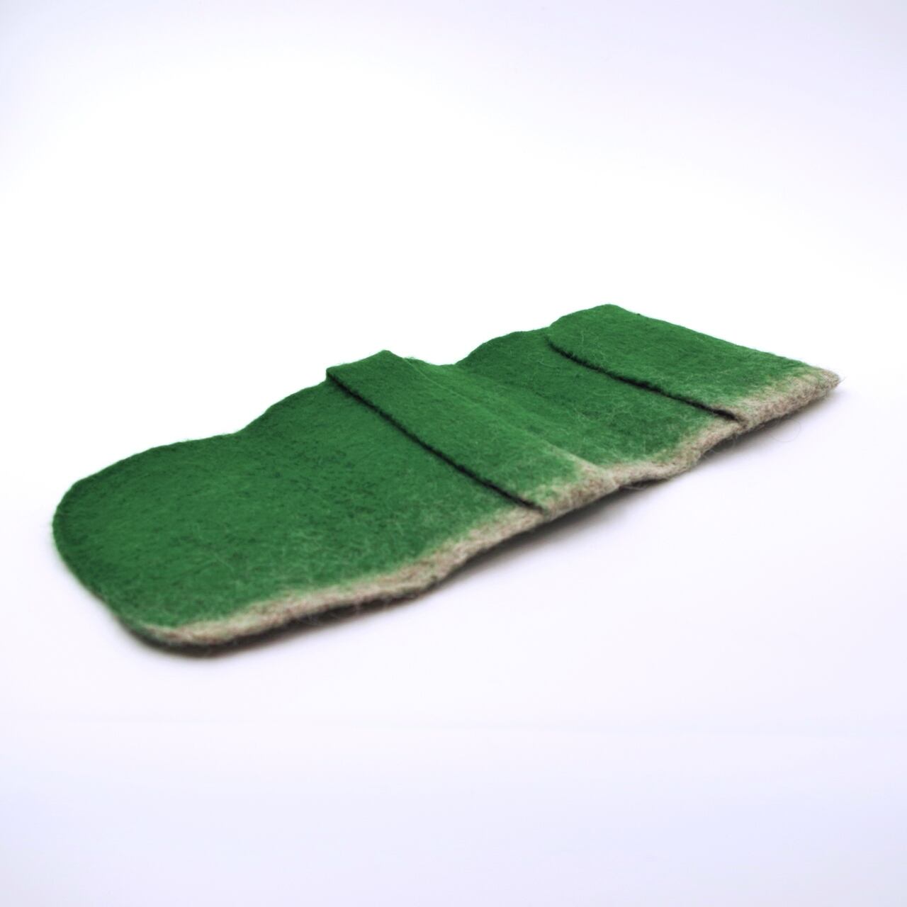 光をいっぱい浴びた植物のような濃い緑色をベースに、下部にナチュラルウールのグラデーションを配しています。