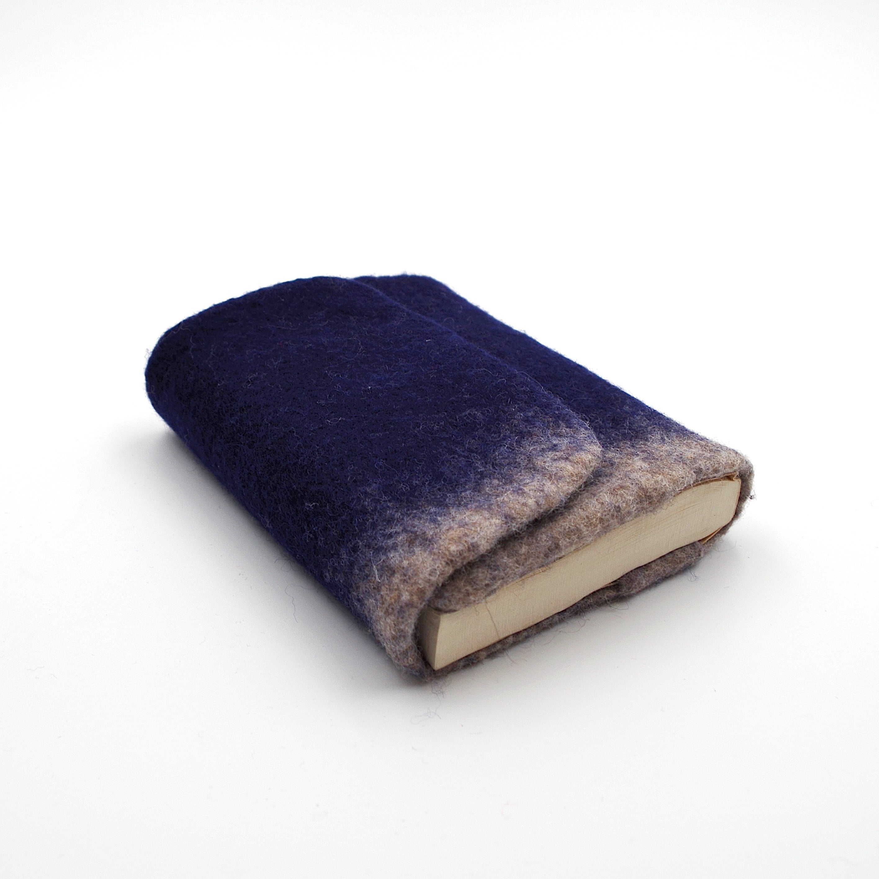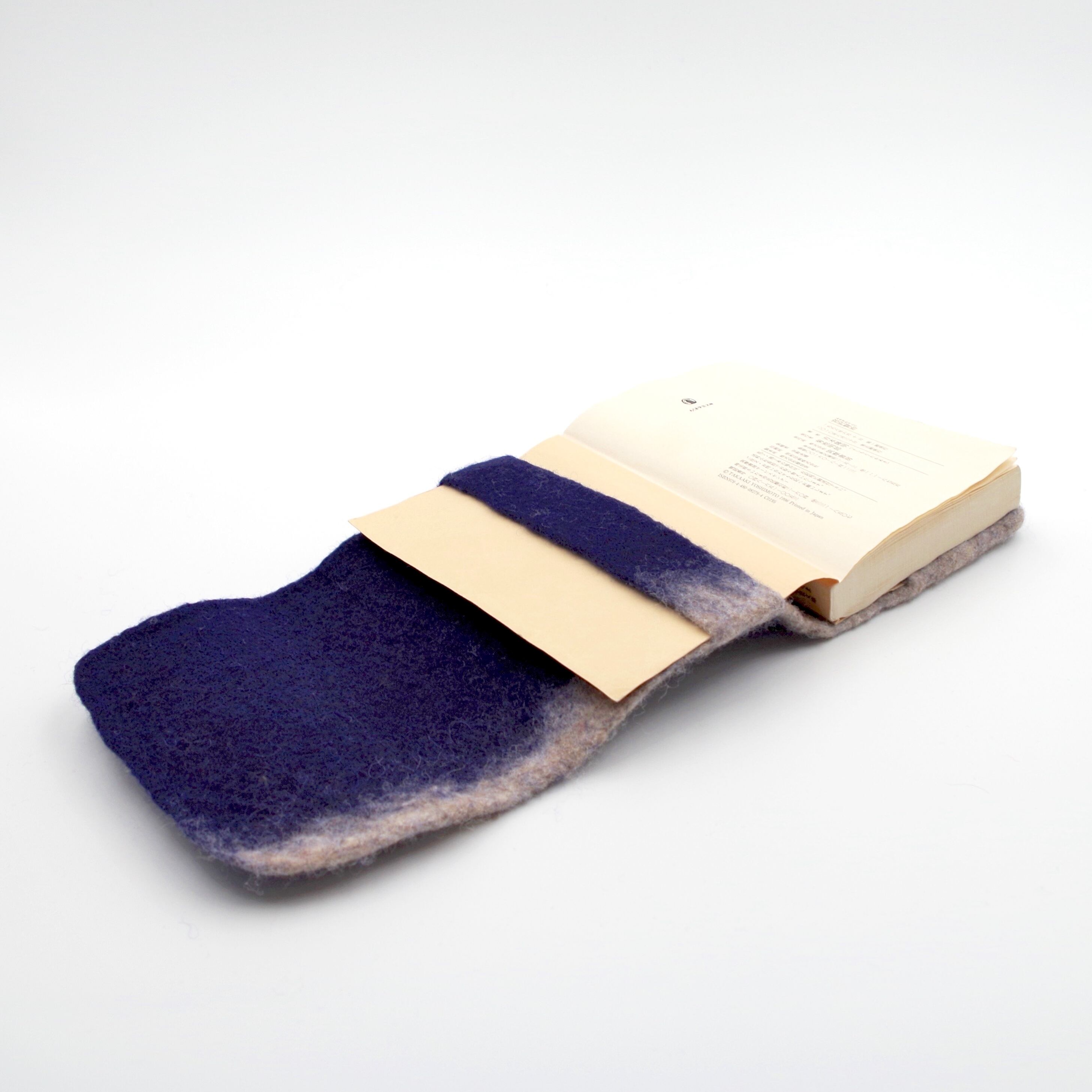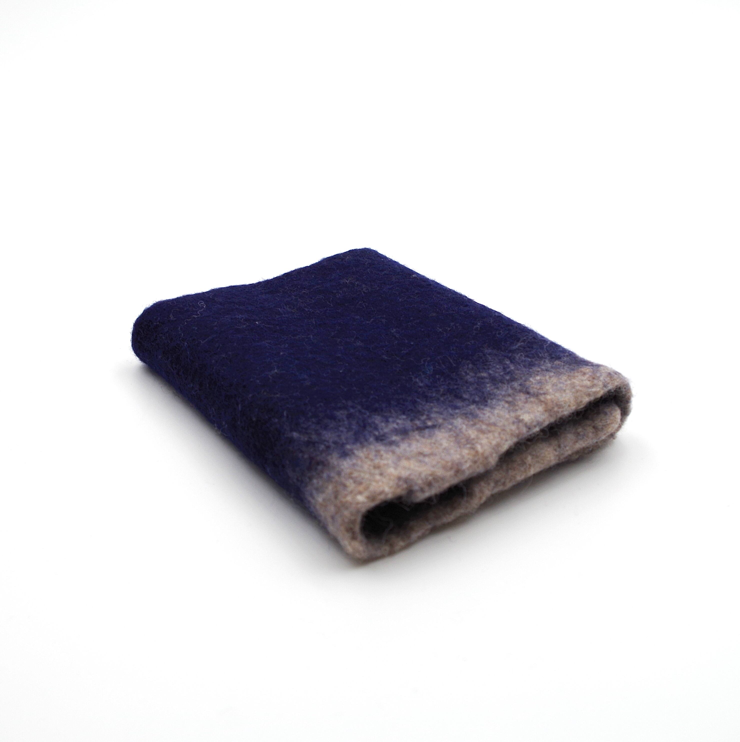 インディゴのような深みのある紺色をベースに、下部にナチュラルウールのグラデーションを配しています。