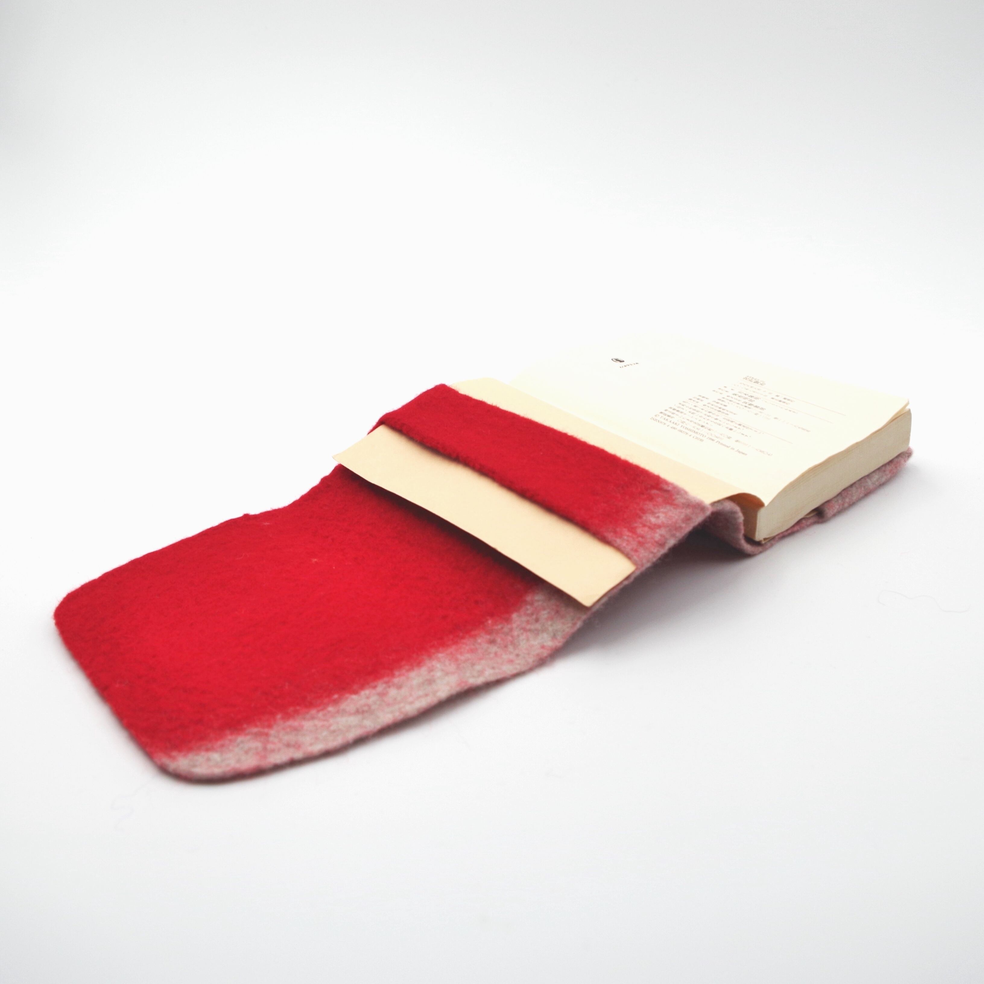 野苺のような深みのある赤色をベースに、下部にナチュラルウールのグラデーションを配しています。