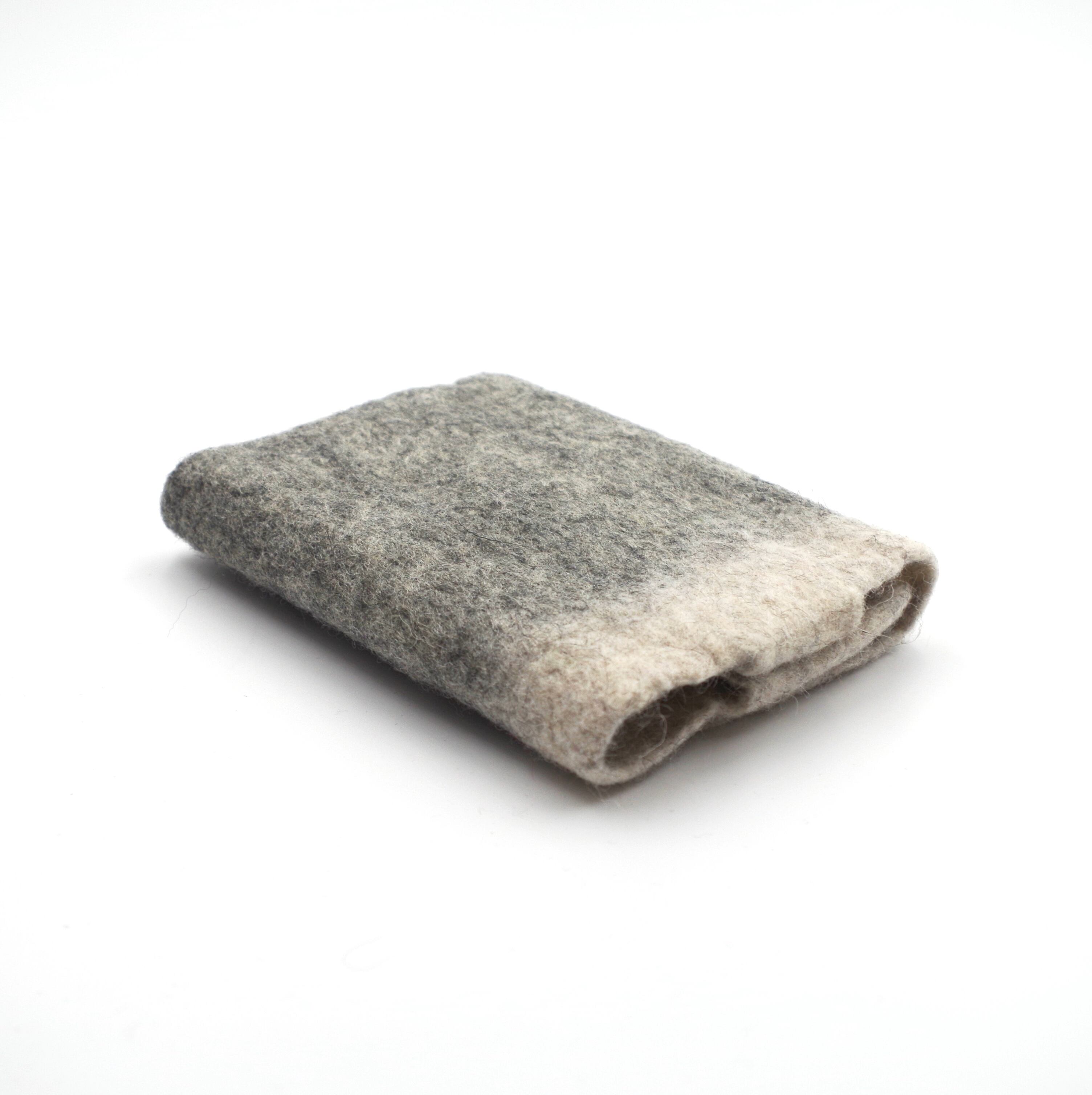 下部の2色の羊毛が混ざり合う(縮絨する)ことで生まれる風合いなどはすべて異なりますので、ハンドクラフトならではのそれぞれの個性の違いをお楽しみください。